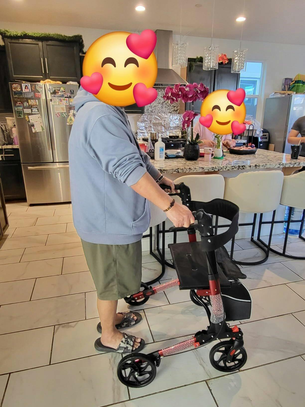 This walker is equipped with 8-inch all-terrain wheels that provide a smooth ride on various surfaces — from indoor flooring and sidewalks to grass, asphalt, and park paths. It’s designed to handle both daily use and outdoor outings with confidence.
