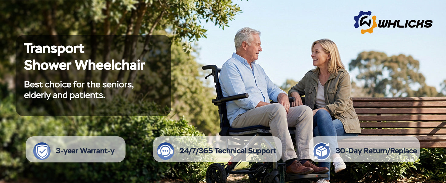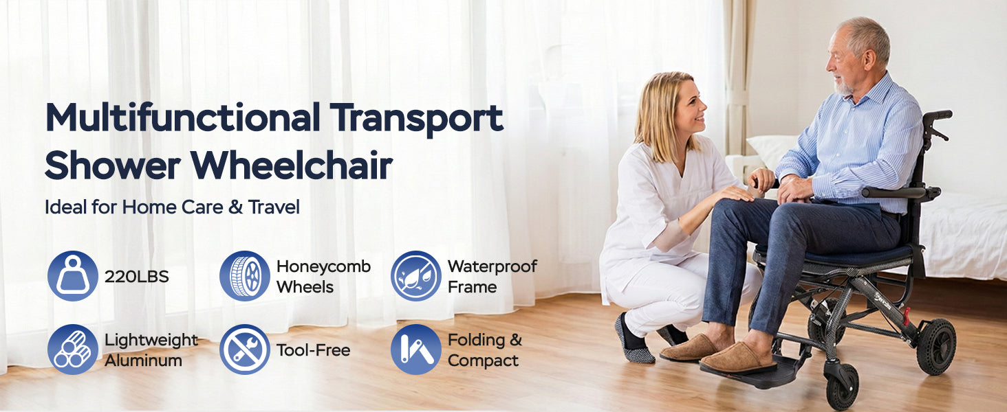 🪑 2-in-1 Design – Functions as both a transport wheelchair and a shower chair.