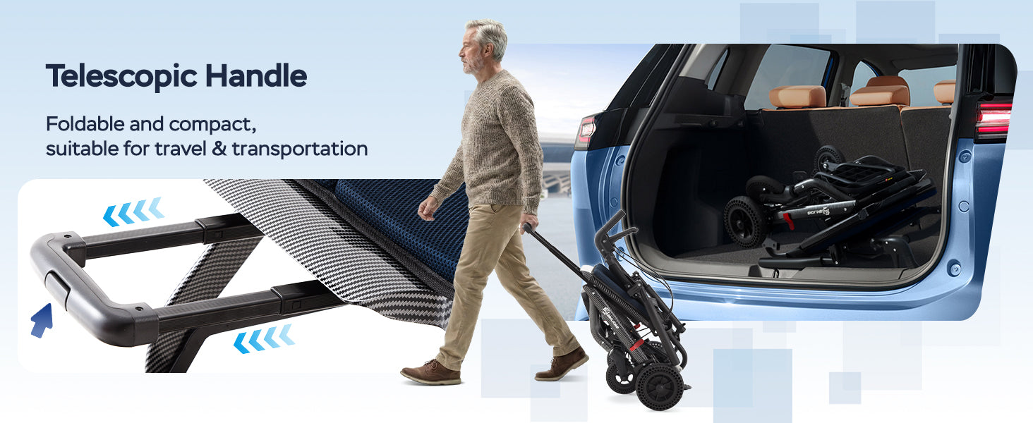 ⚡ Lightweight & Foldable – 22 lbs, folds compactly with telescopic handle for easy transport.