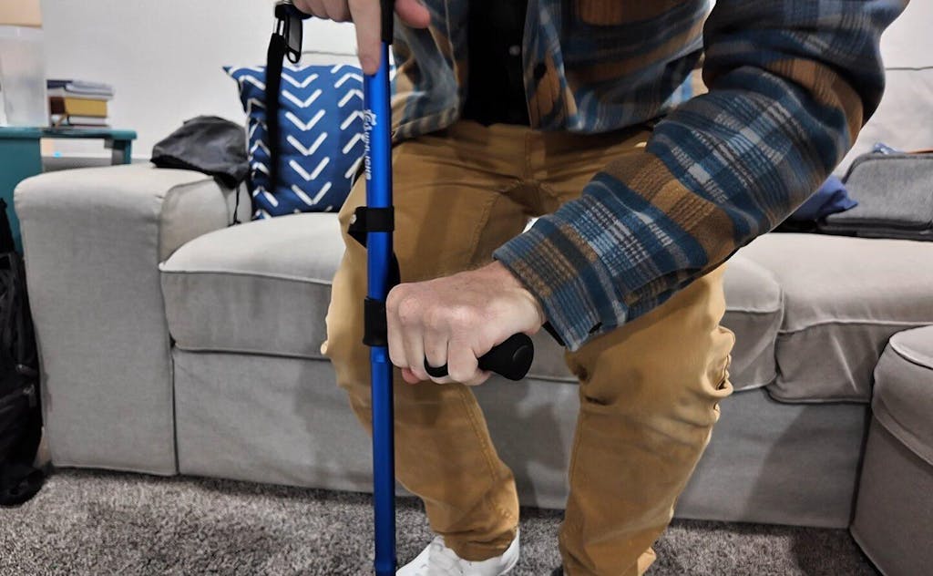 - 𝗗𝘂𝗮𝗹 𝗛𝗮𝗻𝗱𝗹𝗲 𝗗𝗲𝘀𝗶𝗴𝗻: Engineered with two ergonomic handles — a main grip that offers a soft, non-slip touch to reduce palm fatigue, and a secondary assist handle that helps you stand up safely and easily from low chairs or sofas. Especially helpful for seniors or those recovering from injury.