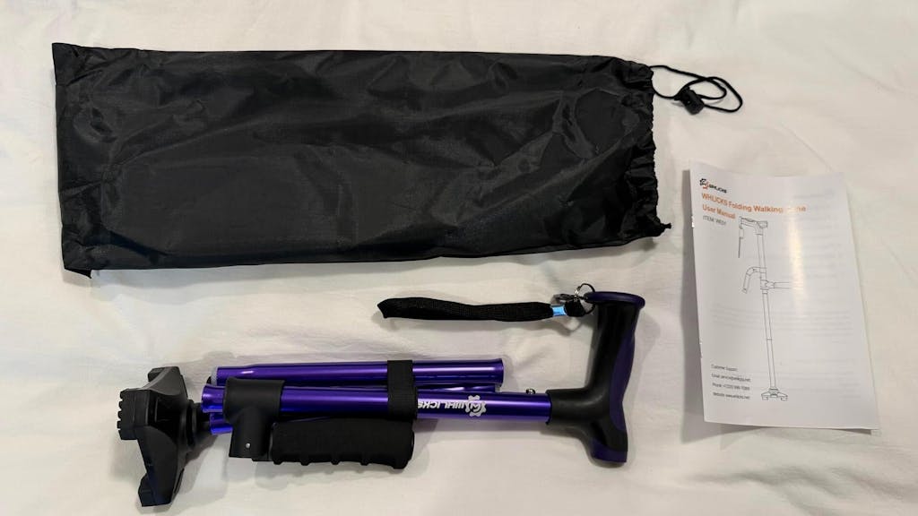 - 𝗟𝗶𝗴𝗵𝘁𝘄𝗲𝗶𝗴𝗵𝘁 & 𝗣𝗼𝗿𝘁𝗮𝗯𝗹𝗲: Weighing only 1.3 lbs (0.6 kg), this folding cane for women & men is easy to carry anywhere. The foldable design lets you pack it in seconds, and it comes with a durable storage bag and Velcro strap for neat organization. Slip it effortlessly into a handbag, wheelchair pouch, or travel case.