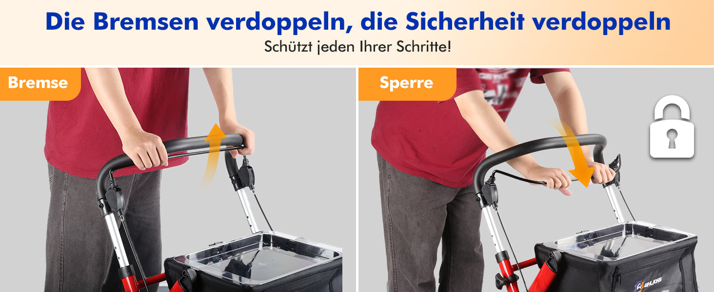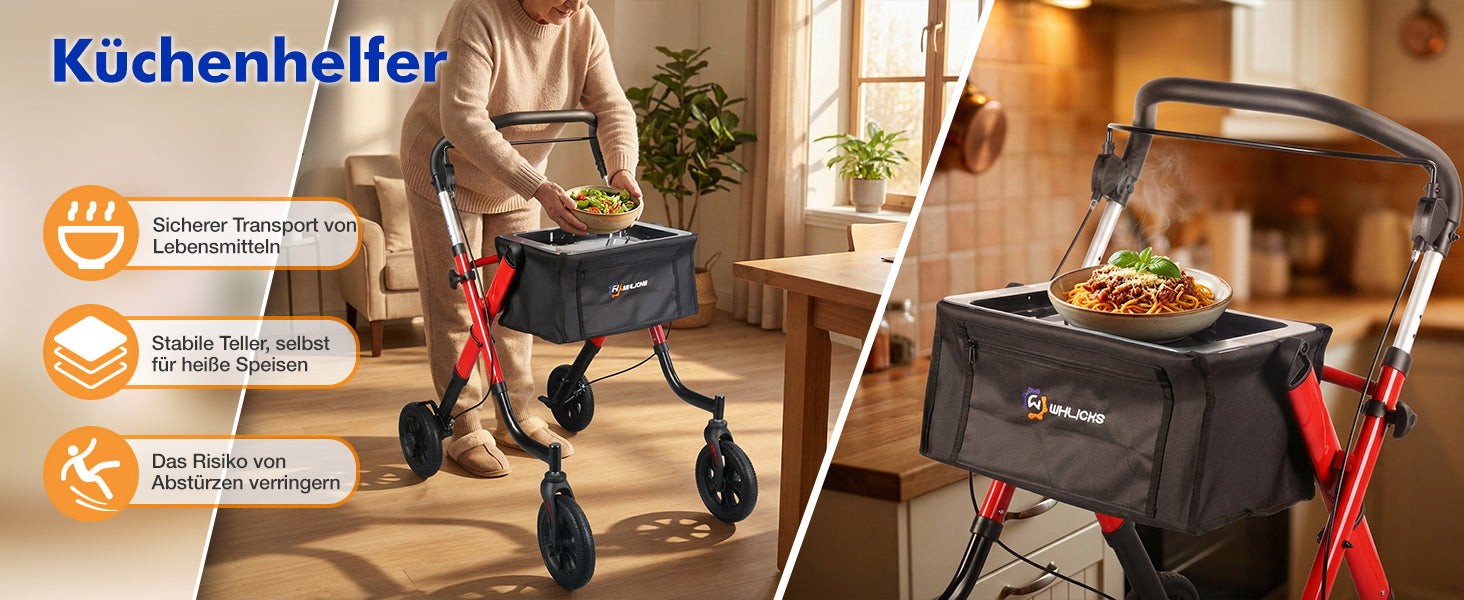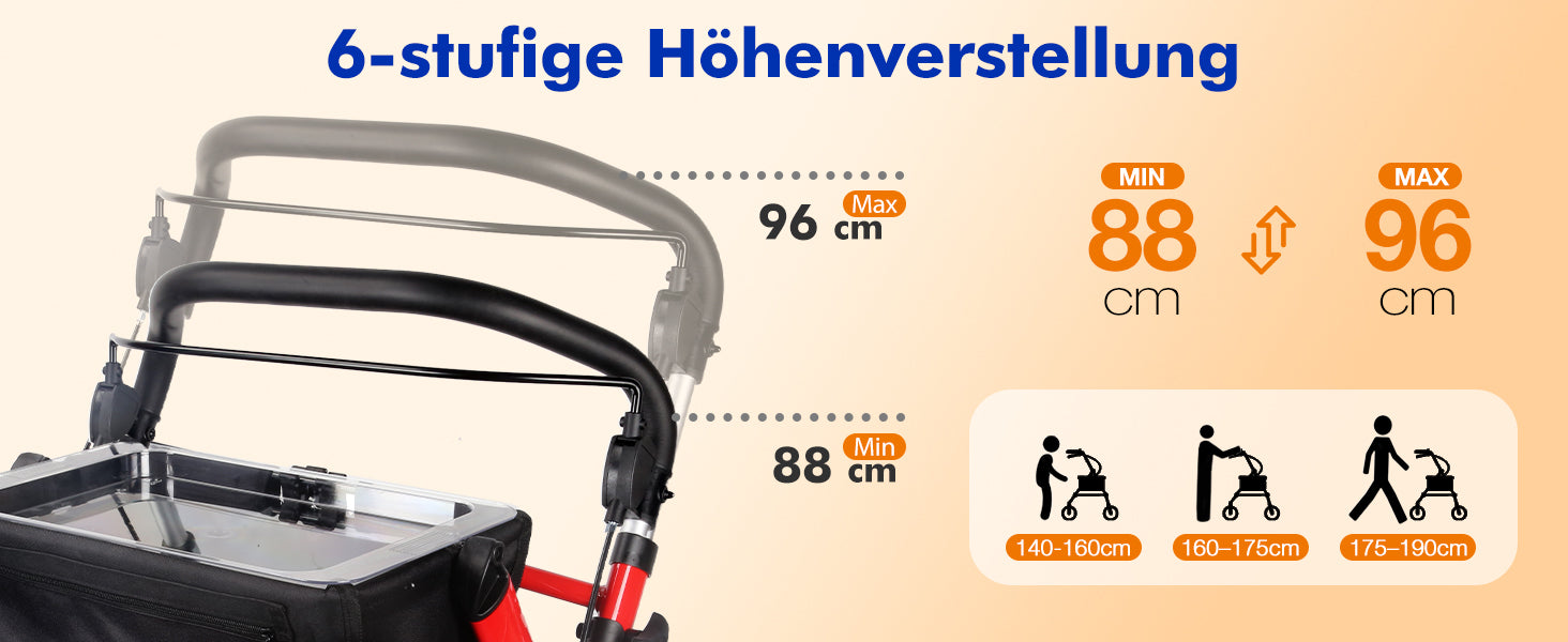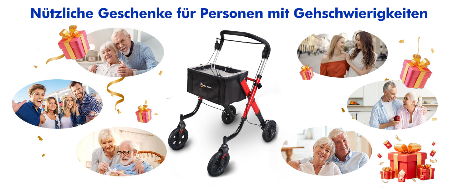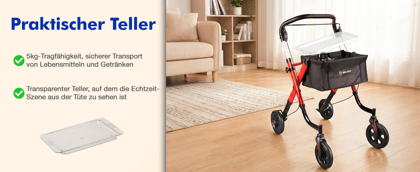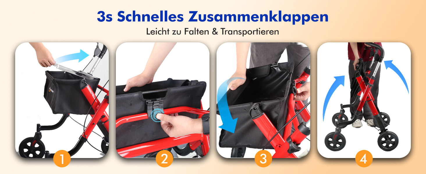 - 3-second folding and lightweight: with only 6.4 kg weight, the walker can be folded in seconds, space-saving storage and easy to transport in the car.