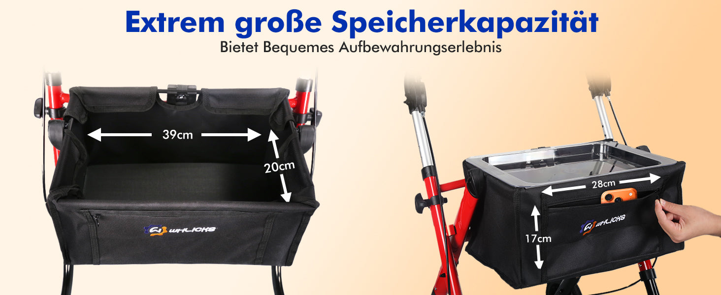 - Practical everyday equipment: Removable drink/snack tray and waterproof Oxford cloth pocket for personal items - perfect for shopping and walking.