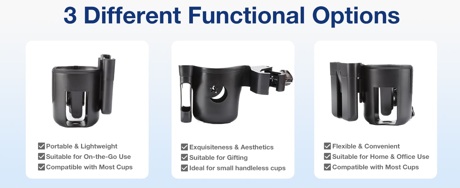 - Widely Use:This walker cup holder fits cups and bottles of various sizes, such as baby bottles, water bottles, insulated mugs, coffee cups, and more. One side has a dedicated slot for handle-equipped cups. The detachable phone holder enhances portability, allowing you to use the cup holder alone or with the phone stand as needed.