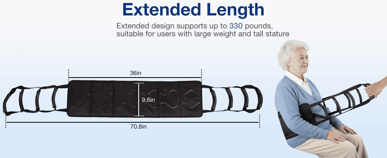 Yes. The sling supports up to 330 lbs and features reinforced stitching, anti-slip padding, and a secure waist strap. The multiple assist handles give caregivers better control, reducing sudden slips or loss of balance during transfers.