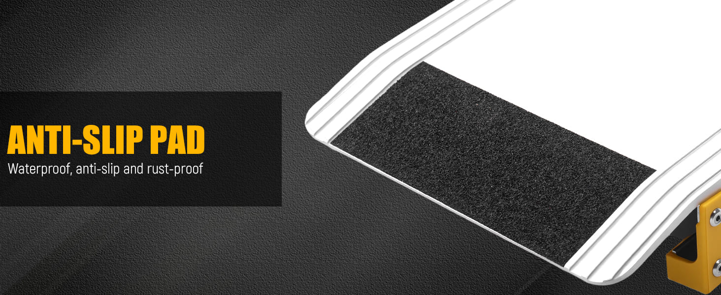 Safe and Non-Skid: The surface of the wheelchair ramp is equipped with a black frosted non-skid pad to create a stable usage environment. It helps prevent slips and falls even in wet or slippery conditions, and provides maximum traction in harsh weather, making transportation safer and more stable.
