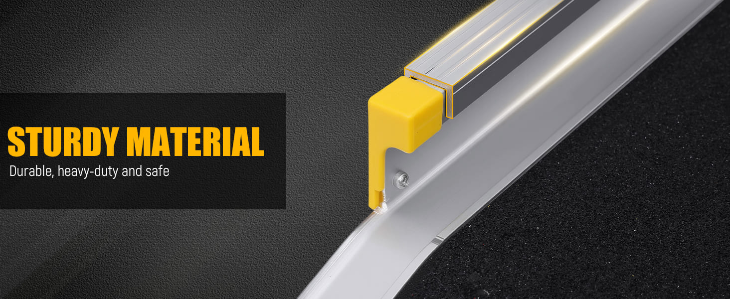 The ramp may slightly bend under heavy weight, but this is normal and part of the design. Its elastic aluminum alloy structure ensures it will bounce back quickly without losing shape or strength.